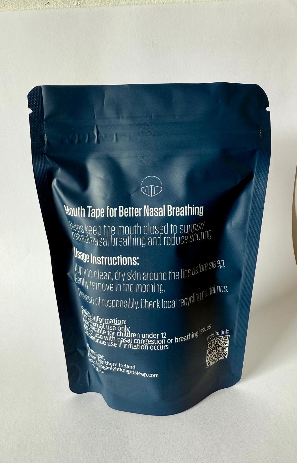 Experience restful nights with NightKnight’s innovative quality Sleep Tape. Designed to effectively reduce snoring, this simple yet powerful solution encourages nasal breathing, promoting better oxygen intake and overall health.